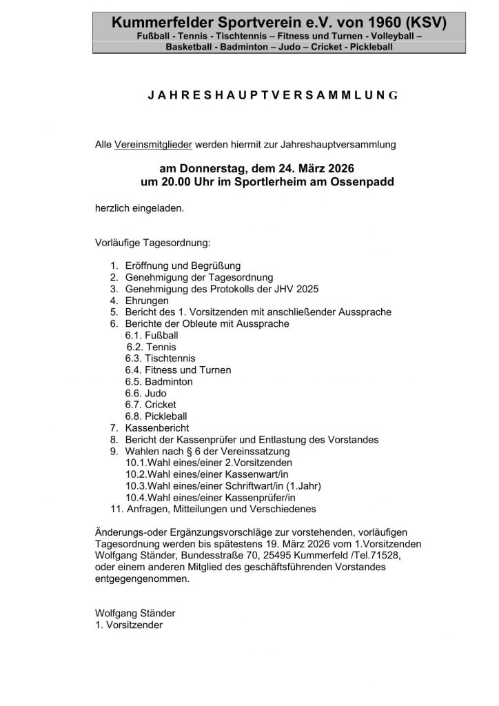 Jahreshauptversammlung Kummerfelder SV